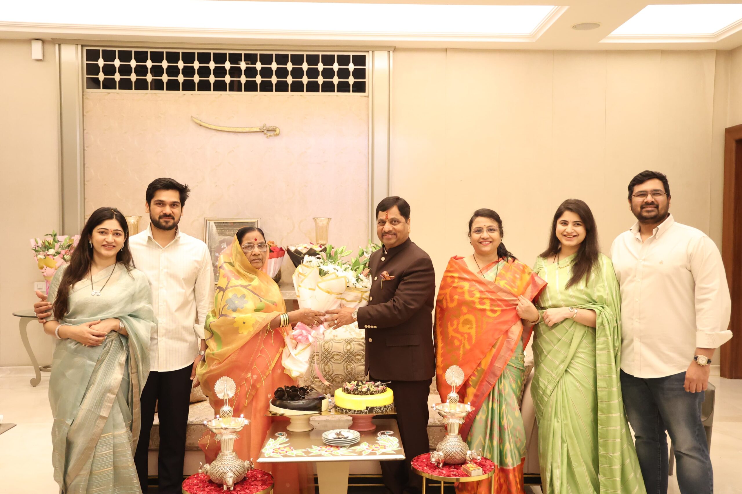 *कोल्हापूर* -डॉ. संजय डी पाटील व सौ. पूजा ऋतुराज पाटील यांना वाढदिवसाच्या शुभेच्छा देताना डॉ. डी. वाय. पाटील कुटुंबीय.