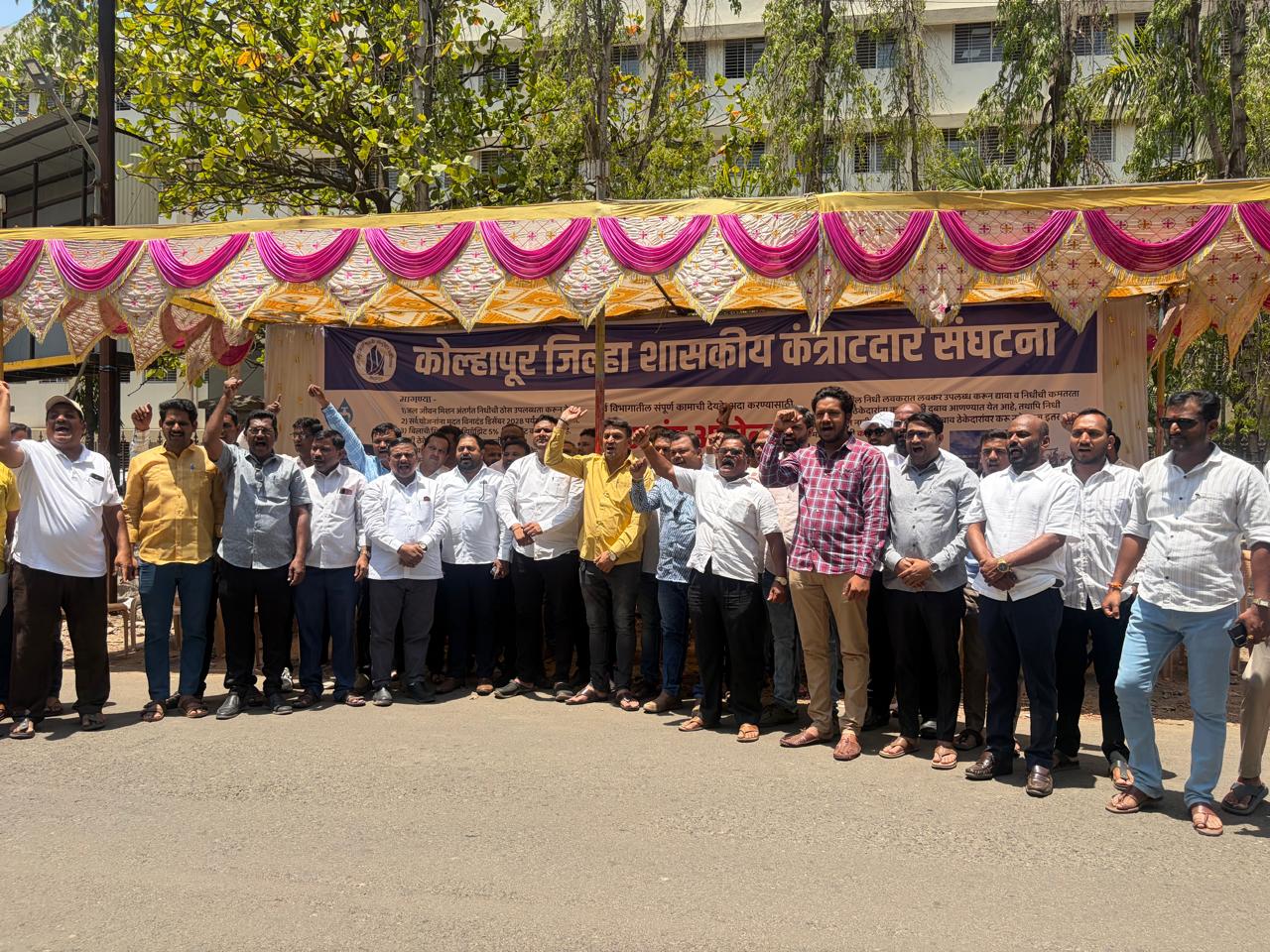 त्यामुळे यावर शासनाच्या अनास्थे बाबत आवाज उठविण्यासाठी आणि सरकारचे लक्ष वेधण्यासाठी कोल्हापूर जिल्हा गव्हर्नमेंट कॉन्ट्रॅक्टर असोसिएशन तर्फे जिल्ह्यातील आज शासनाकडून ठेकेदारांस सकारात्मक प्रतिसाद न मिळाल्यास दिनांक १५/०४/२०२६ नंतर सर्व ठेकेदारांनी सर्व प्रगतीतील विकास कामे बंद करण्याचे पाऊल उचलावे लागले असे सर्वानुमते ठरविण्यात आले आहे. तसेच नवीन कोणत्याही निविदा भरण्याचा नाहीत. नविन निविदेवर बहिष्कार टाकण्यात येणारआहे. अत्यंत महत्त्वाचे तातडीचे कामे १५ एप्रिल २०२६ पर्यंत संपवण्याचे व पुढे कुणालाही प्रकाराचे काम चालू ठेवण्याचे नाहीत असा निर्णय घेतला आहे. आजच्या आंदोलन साठी महाराष्ट्र राज्य हॉट मिक्स संघटनेचे अध्यक्ष माननीय बाबा गुंजाटे साहेब यांनी पाठिंबा दिला आहे. तसेच बिल्डर असोसिएशन ऑफ इंडिया याचे महाराष्ट्र संचालक कृष्णाणि साहेब यांनी देखील पाठिंबा दिलेला आहे. सदर ठिय्या आंदोलन हे दिवसेंदिवस तीव्र होत जाणार आहे महाराष्ट्र राज्य सरकारने याच्यावरती लवकरात लवकर मार्ग नाही काढला तरी आंदोलनाची तीव्रता वाढत जाईल. संबंधित निवेदन जिल्हाधिकारी कार्यालय, जिल्ह्यातील सर्व लोक प्रतिनिधी,मुख्य कार्यकारी अधिकारी जिल्हा परिषद, तसेच सर्व डिपार्टमेंटचे कार्यकारी अभियंता यांना देण्यात आलेले आहे.