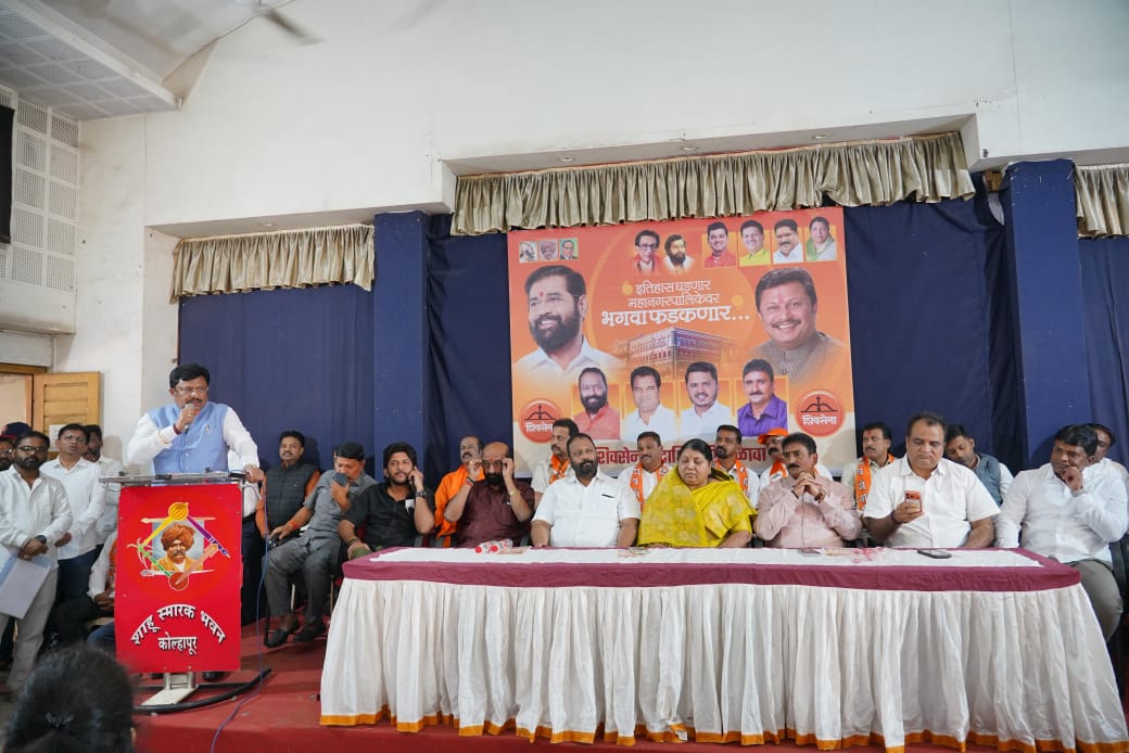 कोल्हापूर महानगरपलिका निवडणुकीच्या अनुषंगाने राजर्षी शाहू स्मारक भवन येथे शिवसेनेचा पदाधिकारी मेळावा पार पडला. या मेळाव्यास शिवसैनिकांच्या गर्दीने शाहू स्मारक भवन परिसर व्यापून गेला. यामध्ये महिलांची उपस्थिती लक्षणीय होती. “जय भवानी, जय शिवाजी”, “शिवसेना जिंदाबाद”, “शिवसेनाप्रमुख बाळासाहेब ठाकरे, धर्मवीर आनंद दिघे आणि उपमुख्यमंत्री एकनाथ शिंदे” यांच्या जयघोषांनी परिसर दणाणून सोडला. मेळाव्याच्या सुरवातीस महापरिनिर्वाण दिनानिमित्त डॉ.बाबासाहेब आंबेडकर यांना अभिवादन करण्यात आले.