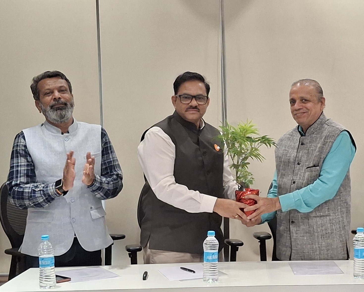 ३. केआयटी आयोजित ‘आयडियाथॉन-२५’ या राष्ट्रीय स्तरावरील स्पर्धेनिमित्त आमंत्रित केलेले विषय तज्ञ डॉ.श्याम आडेपल्ली यांचे स्वागत करताना संचालक डॉ.मोहन वनरोट्टी, डावीकडून श्री सुधीर आरळी.