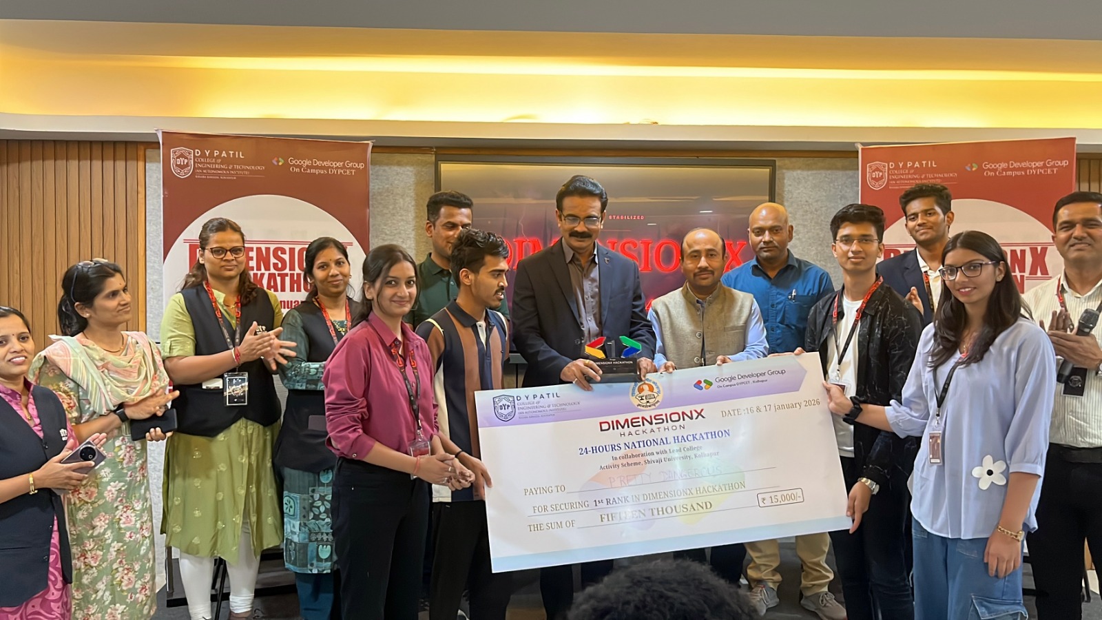 या हॅकेथॉनमध्ये आर. सी. पटेल इन्स्टिट्यूट ऑफ टेक्नॉलॉजी, शिरपूरच्या तनिशा बडगुजर, ओजस्विनी बोरसे, सिद्धेश चौधरी व अथर्व भाश्मे यांच्या ‘प्रीटी डेंजरस’ संघाने प्रथम क्रमांक मिळवला. भारती विद्यापीठ कॉलेज ऑफ इंजिनिअरिंग अँड टेक्नॉलॉजी, कोल्हापूच्या प्रतिक गायकवाड व सोहम देशपांडे यांच्या ‘स्किन स्क्रिपर्स’ संघाने द्वितीय क्रमांक तर तामिळनाडूच्या श्री ईश्वर कॉलेज ऑफ इंजिनिअरिंग, कोईबतूरच्या जयनारायण मेनन नेट्टथ व जेयनंदन ए यांच्या ‘नोवाकोर’ संघाने तृतीय क्रमांक प्राप्त केला. विजयी संघांना अनुक्रमे, 15 हजार, 10 हजार व 5 हजार रुपयांचे पारितोषिक प्रदान करण्यात आले. हॅकाथॉनचे नेतृत्व गुगल डेव्हलपर ग्रुप ऑन कॅम्पस – डीवायपीसीईटीचे लीड आयुष वसवाडे व कोर टीमने केले.