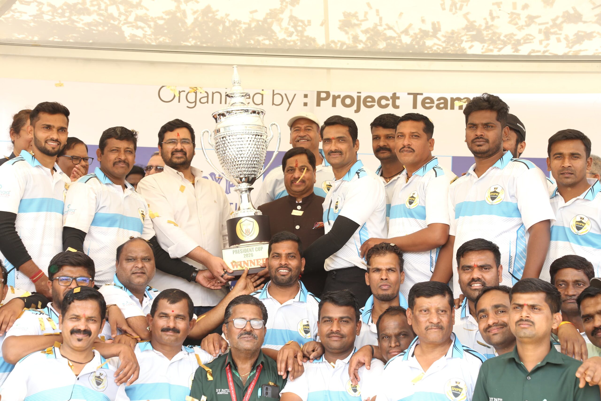 डी वाय पाटील ग्रुपचे अध्यक्ष डॉ. संजय डी पाटील यांच्या ६२ व्या वाढदिवसानिमित्त आयोजित करण्यात आलेल्या ‘प्रेसिडेंट कप’ क्रिकेट स्पर्धेत पुरुष गटात डी वाय पाटील हॉस्पिटल तर महिला गटात डी वाय पाटील अभियांत्रिकी महाविद्यालयाने विजेतेपद पटकावले. डॉ. संजय डी. पाटील व विश्वस्त पृथ्वीराज पाटील यांच्या हस्ते विजेत्या संघाना सन्मानित करण्यात आले.